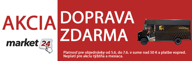 Doprava zdarma na www.market24.sk - od štvrtka 05.06 do soboty 07.06.2014 nakúpte nad 50 EUR a pri platbe vopred máte doručenie zdarma. Ak chcete mať tovar doma na druhý pracovný deň, vyberte si z ponuky tovaru na sklade viac ako 2500 položiek. www.market24.sk/na-sklade/