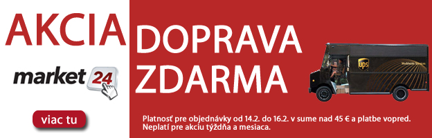 Doprava zdarma - od piatka 14.2 do nedele 16.2.2014 nakúpte nad 45 EUR a pri platbe vopred máte doručenie zdarma. Ak chcete mať tovar doma na druhý pracovný deň, vyberte si z ponuky tovaru na sklade viac ako 420 položiek. www.market24.sk/na-sklade/