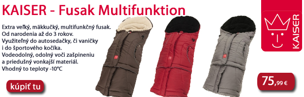 Fusaky pre deti od narodenia (vhodné do vaničky, vajíčka) aj pre deti od 6 mesiacov (do športových kočíkov) až do 3 rokov - to sú fusaky Kaiser: http://www.market24.sk/kaiser/ a fusaky Casualplay: www.market24.sk/doplnky-casualplay/ Väčšina tovaru skladom. Nielen v chladnejších dňoch využijete termosky: http://www.market24.sk/najdene-produkty/termoska/ na jedlo i tekutiny. Vhodné na doma i na cesty.