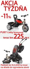 V akcii týždňa ušetrite až do 18% www.market24.sk/akcia-tyzdna/ - Trojkolka Puky Ceety, Hauck drevená stolička Alpha, Jolly Ride hojdačka, Gro digitálny teplomer meniaci farby a Pearhead rámik na stenu. Pozrite si aj novú značku v našej ponuke Gesslein http://www.market24.sk/gesslein/