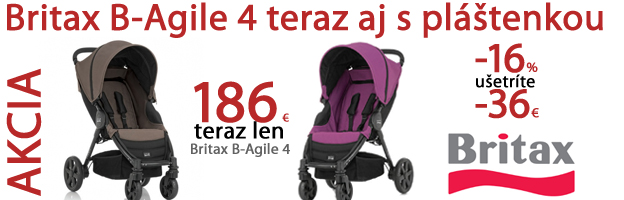 Kočíky B-Agile 4 - teraz v akcii - cena je vrátane pláštenky http://www.market24.sk/britax/ . Vyberajte aj z ďalších akciových ponúk. Ešte stále v akcii máme aj produkty Playgro: http://www.market24.sk/akcna-ponuka-playgro/ so zľavami až do 51% a tiež fusaky Kaiser: http://www.market24.sk/kaiser/ za výborné ceny
