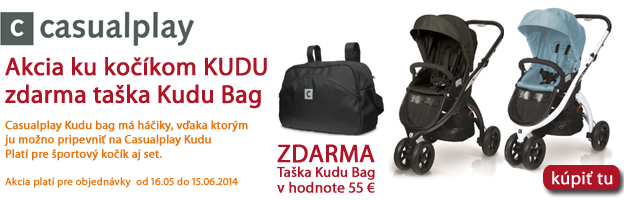 Nová akcia Casualplay – ku kočíkom KUDU A KUDU 4 taška Kudu Bag zdarma. Kočíky a autosedačky kolekcia 2014 na sklade: http://www.market24.sk/casualplay/ Štýlové Kudu a Kudu 4, najobľúbenejšie S4, pre dvojičky a súrodencov Stwinner, ideálny do mesta Avant i najmenší Livi. A k týmto kočíkom si vyberiete univerzálne fusaky Kaiser: http://www.market24.sk/kaiser/