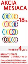 Nová akcia mesiaca ušetríte až do 59% alebo získajte krém Bübchen zdarma: http://www.market24.sk/akcia-mesiaca/ . AVENT - Fľaša 260 ml PP Natural s darčekom zdarma, BRIGHT STARTS - Aktívny stolík a hryzačky, GRO - Digitálny izbový teplomer alebo SMART TRIKE - Recliner kočík . Vyberajte u nás tovar, ktorý máme na sklade: http://www.market24.sk/na-sklade/ a na druhý pracovný deň ho môžete mať doma.
