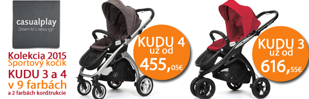 Pozriete si ponuku noviniek 2015 - bezpečných autosedačiek Casualplay pre všetky vekové kategórie. www.market24.sk/autosedacky-casualplay/ Poťahy z tkaniny z bambusových vlákien v 6 nových moderných farbách. Novinky aj v kočíkoch z kolekcie 2015 - športový kočík Loop, štýlové Kudu a Kudu 4, najobľúbenejšie S4, pre dvojičky Stwinner. Všetko v 9 módnych farbách. Ku každému setu prebalovacia taška . www.market24.sk/kociky-casualplay/