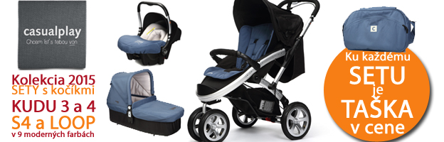 Pozriete si ponuku noviniek 2015 - bezpečných autosedačiek Casualplay pre všetky vekové kategórie. www.market24.sk/autosedacky-casualplay/ Poťahy z tkaniny z bambusových vlákien v 6 nových moderných farbách. Novinky aj v kočíkoch z kolekcie 2015 - športový kočík Loop, štýlové Kudu a Kudu 4, najobľúbenejšie S4, pre dvojičky Stwinner. Všetko v 9 módnych farbách. Ku každému setu prebalovacia taška . www.market24.sk/kociky-casualplay/