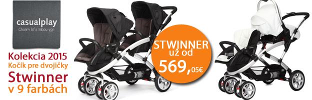 Novinky kolekcia 2015 - športový kočík Loop, štýlové Kudu a Kudu 4, najobľúbenejšie S4, pre dvojičky a súrodencov Stwinner. Všetko v 9 módnych farbách. Ku každému setu prebalovacia taška . www.market24.sk/kociky-casualplay/ a pozriete si aj ponuku bezpečných autosedačiek Casualplay pre všetky vekové kategórie. www.market24.sk/autosedacky-casualplay/