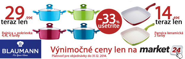 Obľúbené a dizajnovo zaujímavé termohrnčeky Brugo v našej ponuke a na sklade všetky farby: http://www.market24.sk/brugo/ V ponuke máme aj potreby do domácnosti Blaumann: http://www.market24.sk/blaumann/ Teraz vybrané produkty v akcii mesiaca - zľava až 33 % www.market24.sk/super-akcia-blaumann/