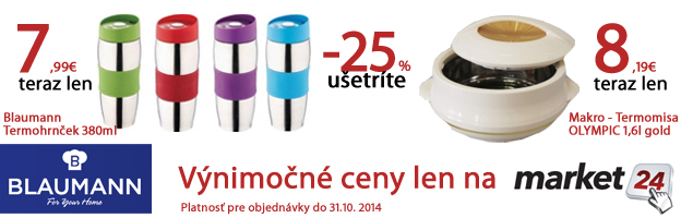 Potreby pre domácnosť Blaumann za super ceny nájdete na http://www.market24.sk/blaumann/ A na vybrané produkty jedinečné zľavy až 28% www.market24.sk/super-akcia-blaumann/ . Ak chcete mať tovar doma na druhý pracovný deň, vyberte si z ponuky tovaru na sklade viac ako 2500 položiek. www.market24.sk/na-sklade/