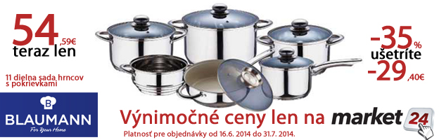 Potreby pre domácnosť Blaumann za super ceny nájdete na http://www.market24.sk/blaumann/ A na vybrané produkty jedinečné zľavy až 35% www.market24.sk/super-akcia-blaumann/ . Ak chcete mať tovar doma na druhý pracovný deň, vyberte si z ponuky tovaru na sklade viac ako 2500 položiek. www.market24.sk/na-sklade/
