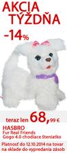 V akcii týždňa ušetríte až do 45% www.market24.sk/akcia-tyzdna/ Hracia konzola od 6 mesiacov, Fisher price jedálenská súprava, Avent cumlíky, Hasbro GoGo 4.0, pršiplášte Minnie a Planes i Ravensburger hra. Väčšina tovaru skladom. Skladom u nás viac ako 3000 tovarov, vyberajte a do druhého pracovného dňa ho môžete mať doma: http://www.market24.sk/na-sklade/