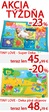 V akcii týždňa ušetríte až do 53% www.market24.sk/akcia-tyzdna/ Hracie deky Tiny Love a Bright Starts, hračky Playgro a Hasbro, chodítko Cars od Bright Starts aj miska s príborom a ISI tanier Vital Baby. Väčšina tovaru skladom. Skladom u nás viac ako 3000 tovarov, vyberajte a do druhého pracovného dňa ho môžete mať doma: http://www.market24.sk/na-sklade/