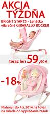 V novej akcii týždňa si vyberte odrážadlo PUKY Pukylino, Boba šatky, Avent Izo hrnčeky, nánožníky Ivema Baby Golf, kôš na plienky Diaper Champ a ležadlo Bright Starts: http://www.market24.sk/akcia-tyzdna/ Ušetríte až do 19%. Ešte do konca apríla platí aj akcia mesiaca: http://www.market24.sk/akcia-mesiaca/ v ktorej získate napr. zdarma nánožník k Britax B-Agile, knižky k odrážadlám PUKY, autosedačkám či kočíkom.