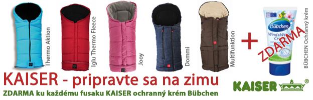 Zdarma ku každému fusaku KAISER u nás dostanete BÜBCHEN - Baby Ochranný krém do vetra a nečasu. Využite októbrovú akciu a pripravte sa na zimu. www.market24.sk/kaiser/.