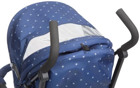 Funky je vybavený 5-polohovým operadlom, vnútorným polstrovaním a nastaviteľnou opierkou nôh a odnímateľnou lakťovou opierkou s reflexným materiálom, čo z neho robí veľmi pohodlný kočík.