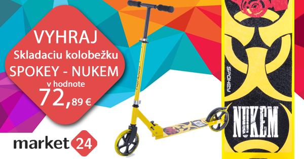 NOVÁ SUPER SÚŤAŽ s Market24.sk o Skladaciu kolobežku SPOKEY - NUKEM v hodnote 72,89 €. Stačí dať like našej stránke https://www.facebook.com/market24/ , zdieľať ju vašim priateľom a uviesť do komentu názov produktu z kategórie šport, ktorý sa vám páči a chceli by ste ho kúpiť vašim deťom, alebo vám. Širokú ponuku športových potrieb nájdu slovenskí klienti na: http://bit.ly/2sazK8x a českí na: http://bit.ly/2saxkH7