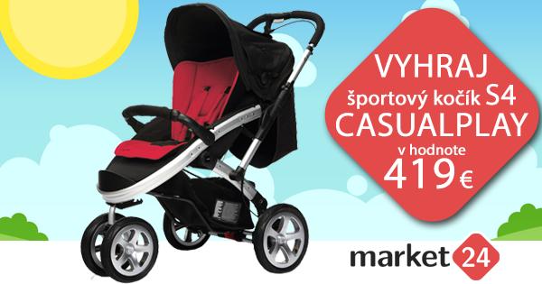 Pokračuje SUPER SÚŤAŽ o Športový kočík CASUALPLAY S4 v hodnote 419 €. Stačí dať like našej stránke https://www.facebook.com/market24/ , zdieľať ju vašim priateľom a uviesť do komentu názov produktu značky Casualplay, ktorý sa vám páči a chceli by ste ho kúpiť vašim deťom. Širokú ponuku značky Casualplay nájdete na: http://bit.ly/2po0vYE