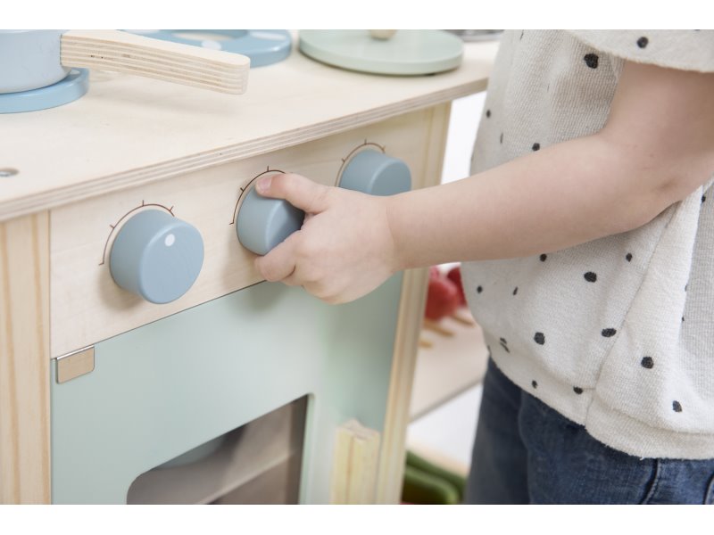 Váš malý šéfkuchár môže piecť a vyprážať v tejto kompletnej drevenej kuchyni Little Dutch. Kuchynka obsahuje hodiny, veľa riadu, drez, otváraciu rúru s magnetkou, kohútik. Kuchynka je dodávaná s extra nástavcami (6 cm), ktoré možno pripevniť pod nohy kuchyne, takže váš malý šéfkuchár si môže vychutnať potešenie z varenia mnoho rokov.