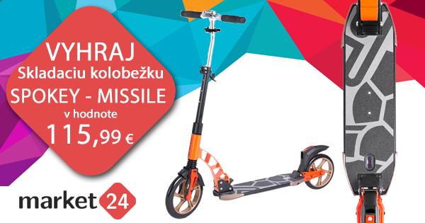 POZOR - už len do zajtra sa môžete zapojiť do SUPER SÚŤAŽE o Skladaciu kolobežku SPOKEY - MISSILE v hodnote 115,99 €. Stačí dať like našej facebookovej stránke http://bit.ly/2vVGEEd , zdieľať ju vašim priateľom a uviesť do komentu názov produktu z kategórie Šport, ktorý sa vám páči a chceli by ste ho kúpiť vašim deťom, alebo vám. Širokú ponuku športových potrieb nájdu slovenskí klienti na: http://bit.ly/2sazK8x a českí na: http://bit.ly/2saxkH7 Prosíme nekopírovať odpovede iných súťažiacich zo stránky. Radi by sme poznali váš názor. Platnosť súťaže od 25.6.do 7.7. 2018.