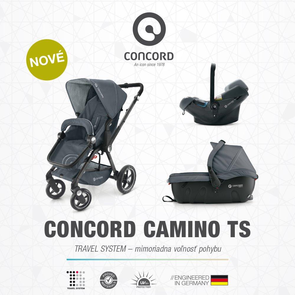Camino je nový model nemeckej značky Concord s moderným dizajnom a s prepracovanými detailami. Vďaka penovým terénnym kolieskam a odpruženiu zvládne každý terén a zaručuje bezpečnú a tichú jazdu kdekoľvek.