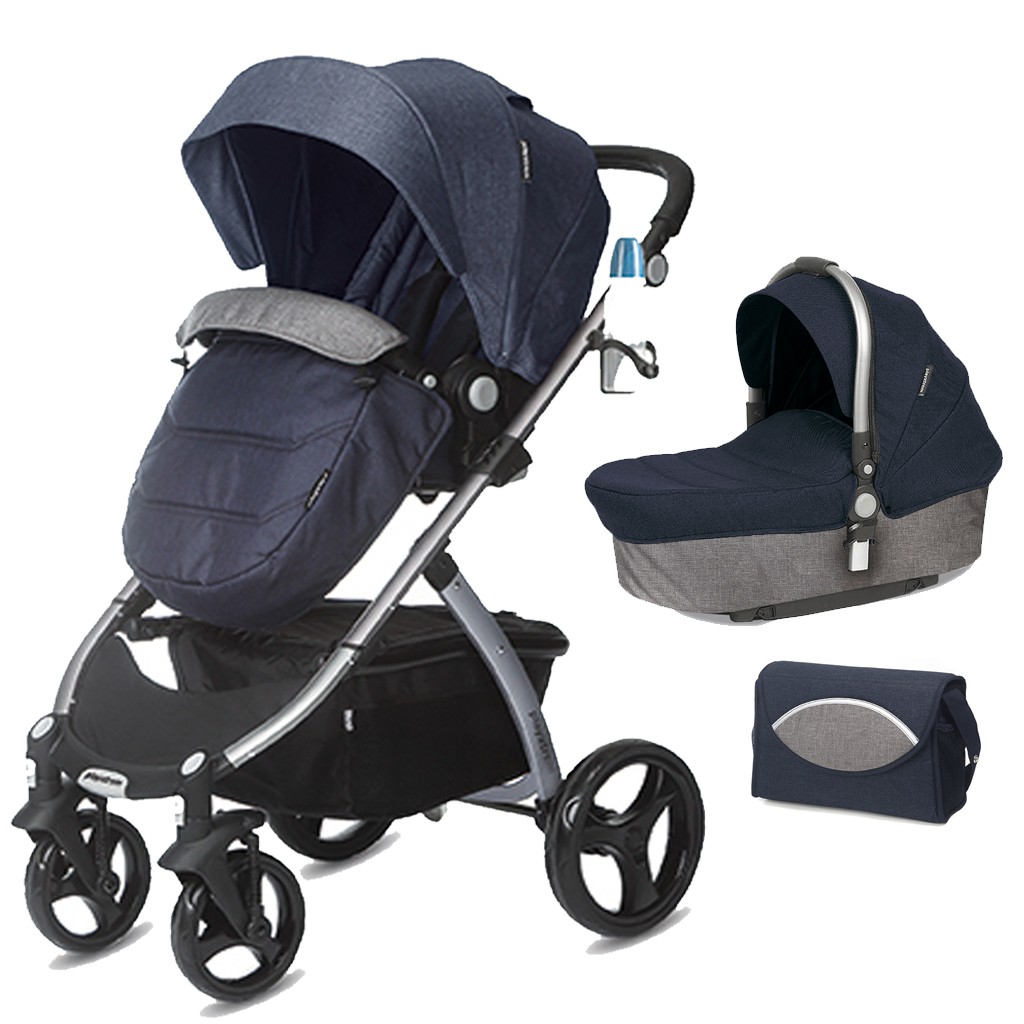 Set 4v1 obsahuje športový kočík, autosedačku 0-13 kg, vaničku a prebaľovaciu tašku len za 569,05 € a Set 3 v1 obsahuje športový kočík, vaničku a prebaľovaciu tašku len za 474,99 €.