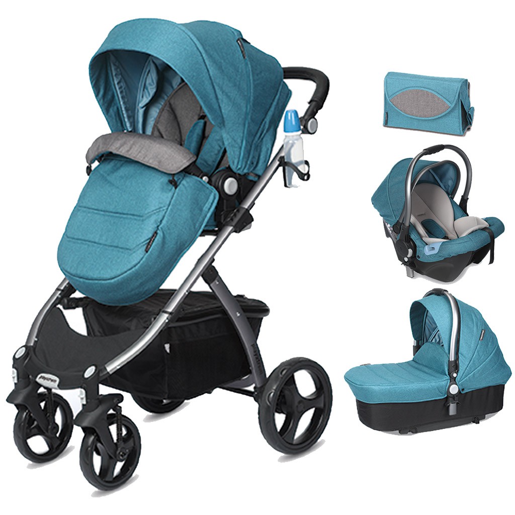 Set 4v1 obsahuje športový kočík, autosedačku 0-13 kg, vaničku a prebaľovaciu tašku len za 569,05 € a Set 3 v1 obsahuje športový kočík, vaničku a prebaľovaciu tašku len za 474,99 €.
