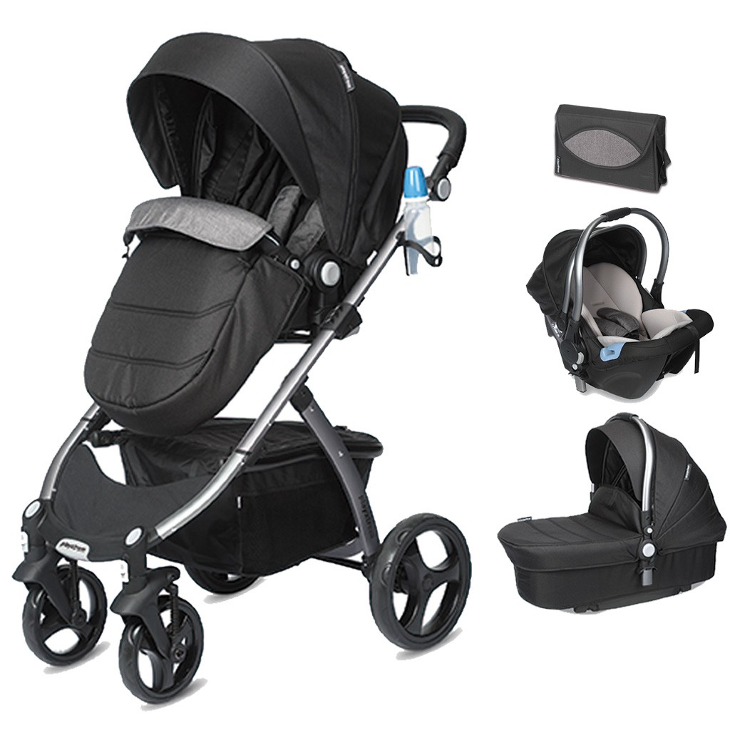Set 4v1 obsahuje športový kočík, autosedačku 0-13 kg, vaničku a prebaľovaciu tašku len za 569,05 € a Set 3 v1 obsahuje športový kočík, vaničku a prebaľovaciu tašku len za 474,99 €.