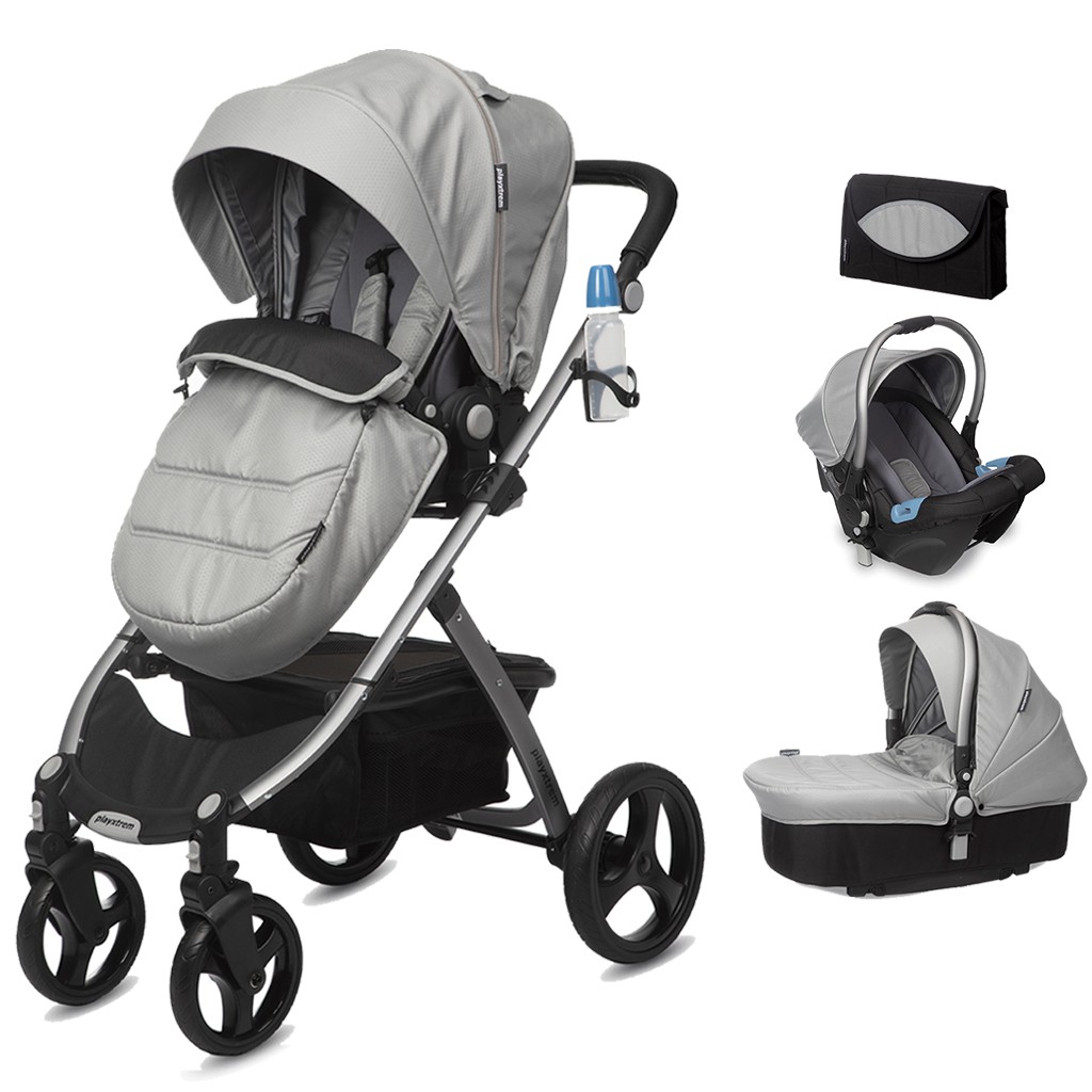 Set 4v1 obsahuje športový kočík, autosedačku 0-13 kg, vaničku a prebaľovaciu tašku len za 569,05 € a Set 3 v1 obsahuje športový kočík, vaničku a prebaľovaciu tašku len za 474,99 €.