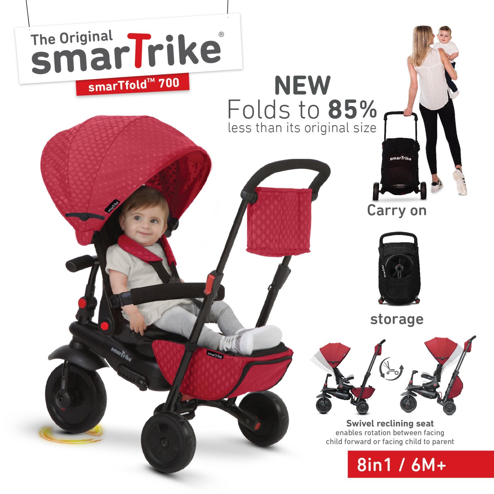 Smart Trike predstavuje revolučnú novinku - plne sklápacie trojkolky Fold. Sú určená pre jednoduché skladanie a kompaktné skladovanie. Žiadna komplikácia - nie sú potrebné žiadne nástroje. Žiadna demontáž. Len pár kliknutí. Skvelá na cestovanie - jednoducho ju dáte do auta i na palubu lietadla.