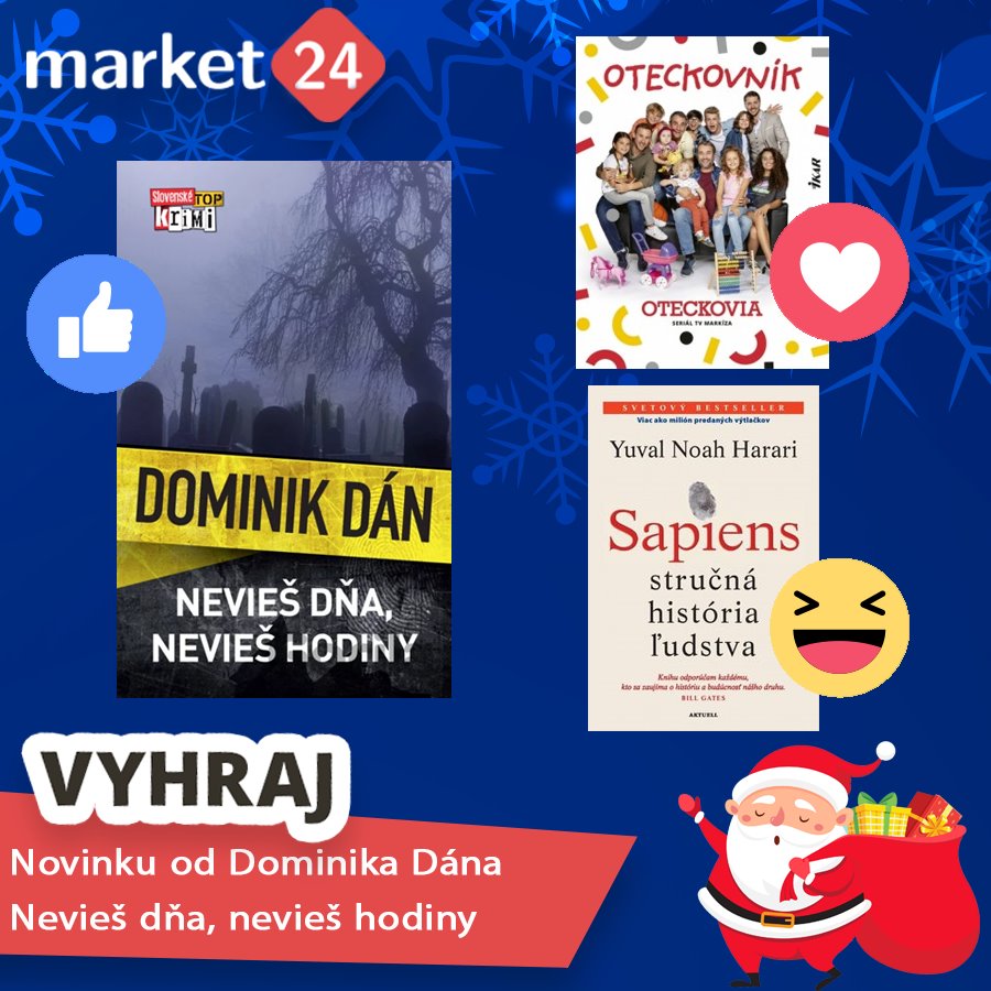 Ktorú z týchto 3 výborných kníh ste čítali, alebo by ste si chceli prečítať? Vybranej knihe dajte prosím emotitkon, ktorý je v rohu knižky na našej facebookovej stránke http://bit.ly/2OY0MyX a zdieľajte súťaž vašim priateľom . Ak ste si nevybrali, dajte príspevku like a do poznámky uveďte link na vašu obľúbenú knižku. Našu širokú ponuku kníh nájdete na http://bit.ly/2iqijxs . Súťaž je platná do 17. 12. 2019. Následne 18. 12. 2019 vyberieme jedného výhercu, ktorému zašleme výhru, bestseller Nevieš dňa, nevieš hodiny od Dominika Dána.