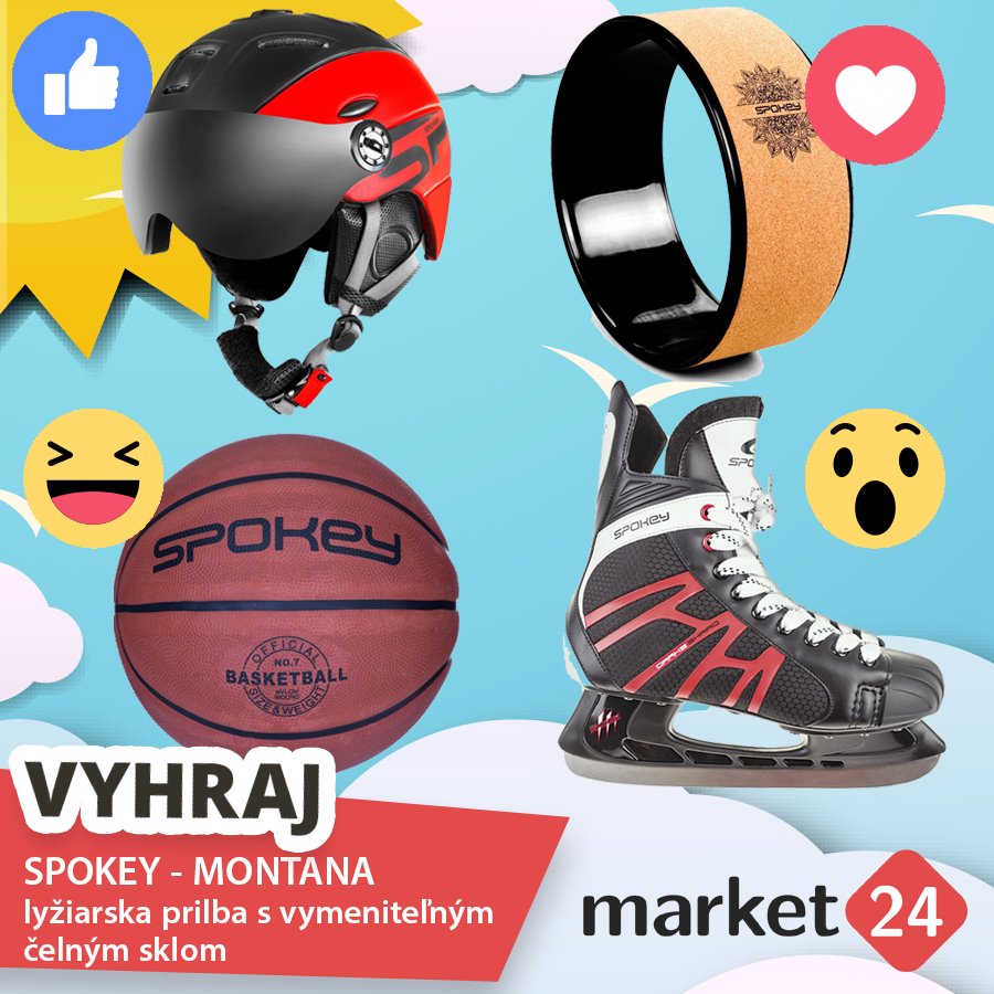 tále môžete vyhrať super novinku - lyžiarsku prilbu s vymeniteľným čelným sklom SPOKEY - MONTANA čierno-červenú, vel. L / XL. Ktorú z týchto 4 výborných športových potrieb z ponuky značky SPOKEY používate, alebo plánujete kúpiť na Vianoce Vám alebo vašim deťom? Vybranému produktu dajte prosím emotitkon, ktorý je v rohu daného produktu na našej facebookovej stránke http://bit.ly/2OY0MyX + zdieľajte túto súťaž svojim priateľom. Ak ste si nevybrali, dajte príspevku like a do poznámky uveďte link na iný produkt značky SPOKEY, ktorý sa vám páči. Širokú ponuku športových potrieb značky SPOKEY nájdu slovenskí klienti na: http://bit.ly/2rj1lsy a českí na: http://bit.ly/2mSwPkT .