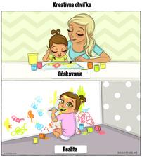 Je to presne tak a je to krasne. To očakávane keby ozaj bolo v realite, tak by to bolo nudne a nebolo by to ono, lebo mat dieta, to je aj mat jedinečný zážitok, ktorý s nikým iným, len s deťmi zažijeme. A ja sa usmejem tiez uz nad realitou a kašlem aj mala nieco pokresli, vyparati. Tesim sa, ze sme vsetci spolu, zdraví a ze v starobe budeme spomínať s tatom na nase jedinečne spoločne chvíle