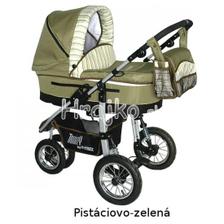 parametre:praktický univerzálny kočiar (hlboko-športový)- moderne riešená hliníková konštrukcia- otvárateľné okienko v streche- ľahká manipulácia- všetky kolesá nafukovacie- regulácia odpruženia zadných kolies- otočné predné kolesá- brzdenie zadných kolies- teleskopická rukoväť- výškovo nastaviteľné madlo- regulovateľná opierka chrbta v športovom prevedení od polohy ležiacej do polohy sediacej- regulovateľná opierka nôh- 5-bodové bezpečnostné pásy- 2 nánožníky a taška v komplete- možnosť montáže športového prevedenia predom alebo zadom k smeru jazdy- rozmery športovej časti : (d x š x v opierky): 30 x 35 x 41 cm- rozmery vaničky (d x š x h): 82 x 36 x 22 cm- hmotnosť kočíka: 12 kg