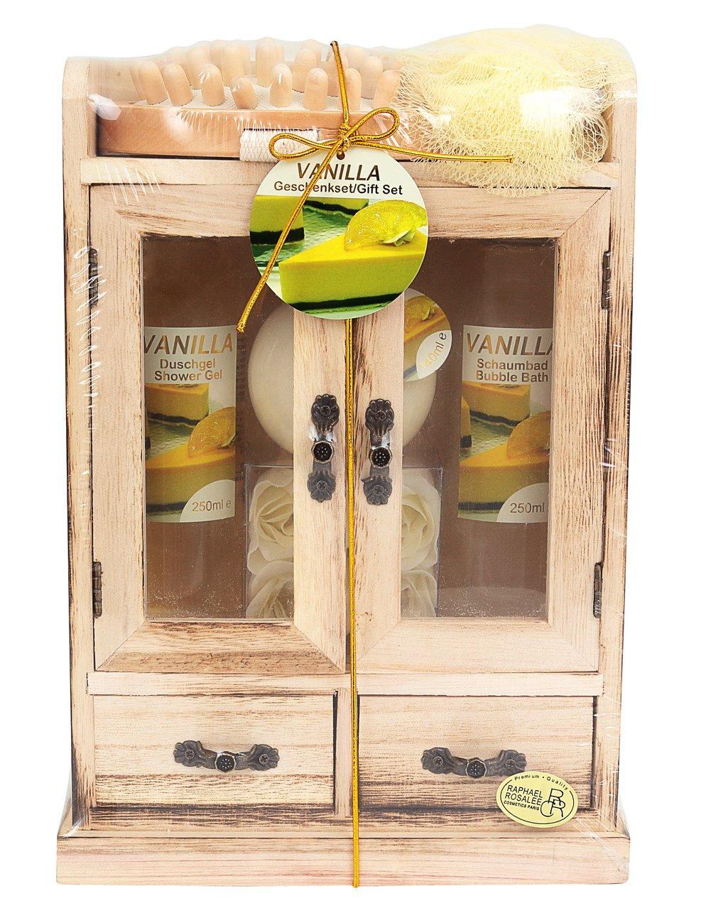 260 ml sprchový gél, 260 ml pena do kúpeľa, 150 ml telové mlieko, 4*4 g mydlo, masážna kefa, špongia