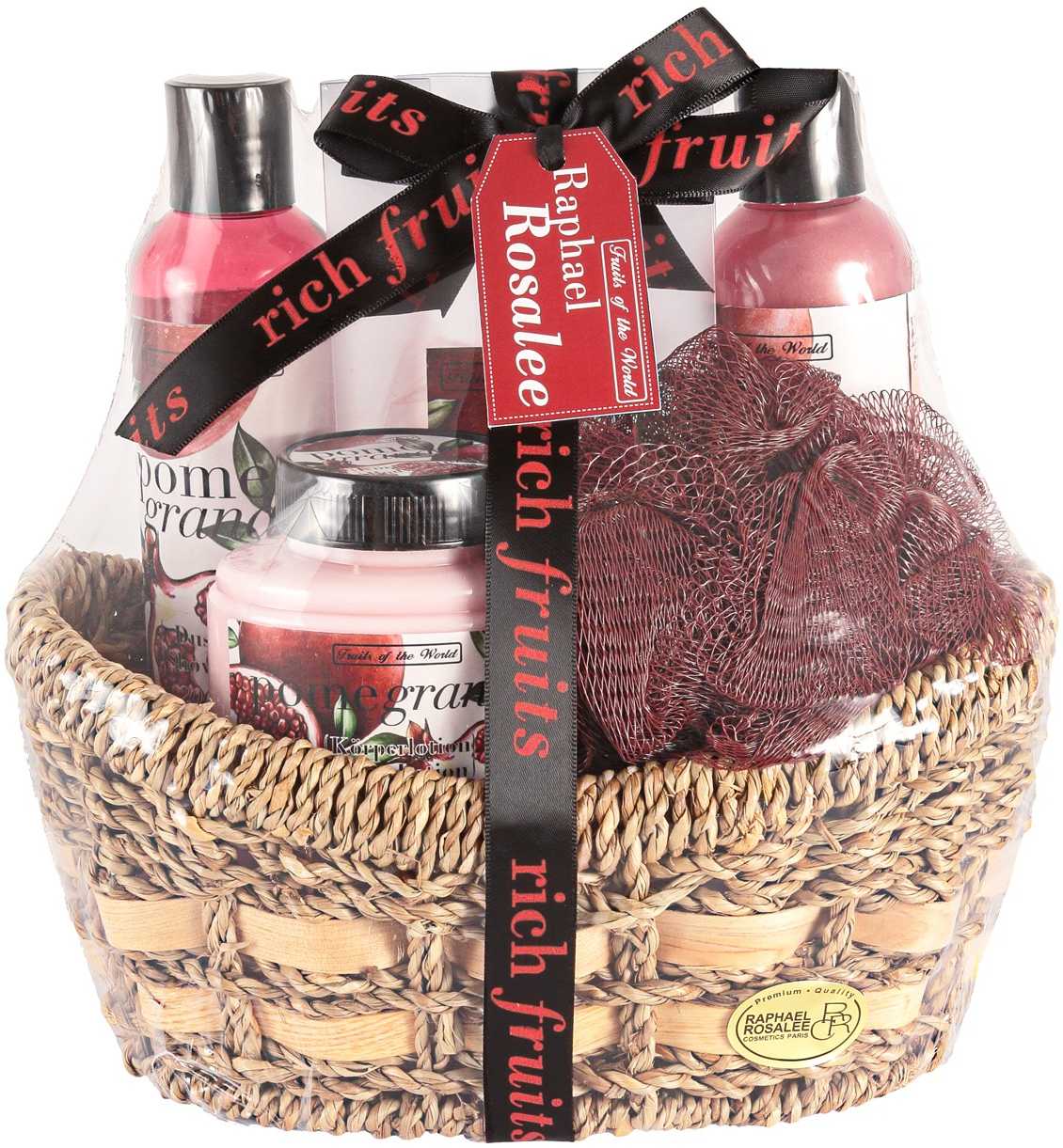 190 ml sprchový gél, 190 ml pena do kúpeľa, 200 ml telové mlieko, 200 g soľ do kúpeľa, špongia