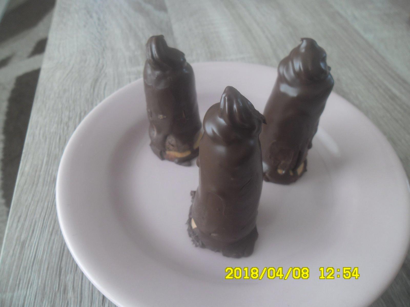 Daj ich na balkon do zimy zase stuhnut a ked budu stuhnute tak roztop horku cokoladu,daj do pohara (najlepsie šalka alebo pohar) a rychlo macaj v cokolade.Otoc dole hlavou spic a namoc cely.Musia byt stuhnute aby ti nespadli do cokolady 😃 😃