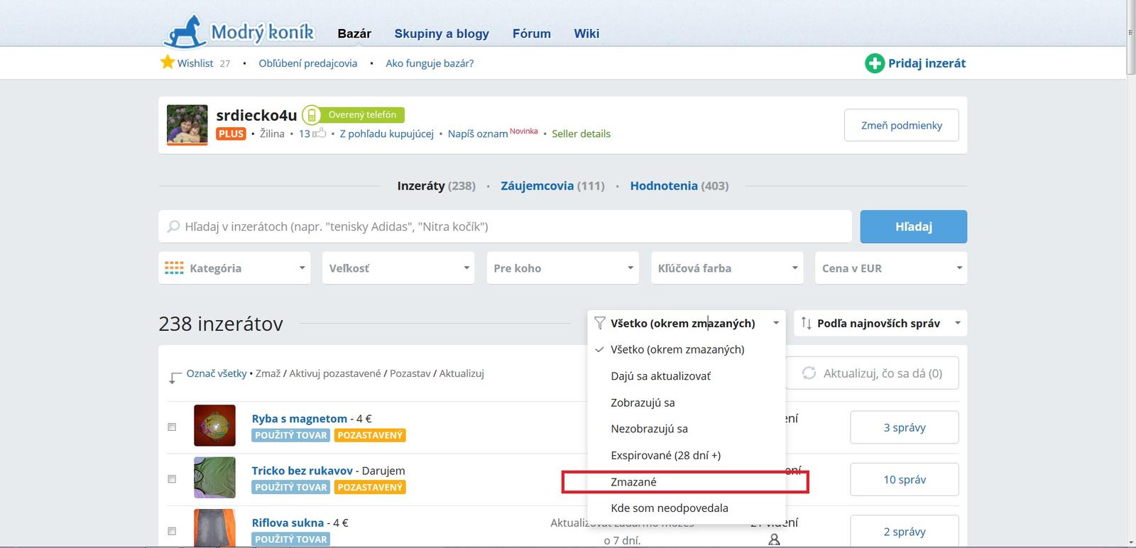 Môžem poprosím adminky, aby radšej upozornili na úpravu inzerátu? Nemusíte mi ho hneď zmazať..som rada, že som si našla čas veci nafotiť, po prípade premerať a vložiť sem inzerát...čo bolo robené už davnejsie..tzn. že bol nahravany podľa starých pravidiel a navyše fotky v ňom použité mám už zmazané z fotaku. Takže ďakujem veľmi pekne, že môžem veci opat vyberať z krabíc, nanovo premeriavat a fotiť...naozaj nám to tu "ulahcujete". A píšem to tu, pretože vám sa na správu nedá ani opísať! Verím, že si to nájdete, veď predsa vidíte všetko. Krásny víkend vám želám...
