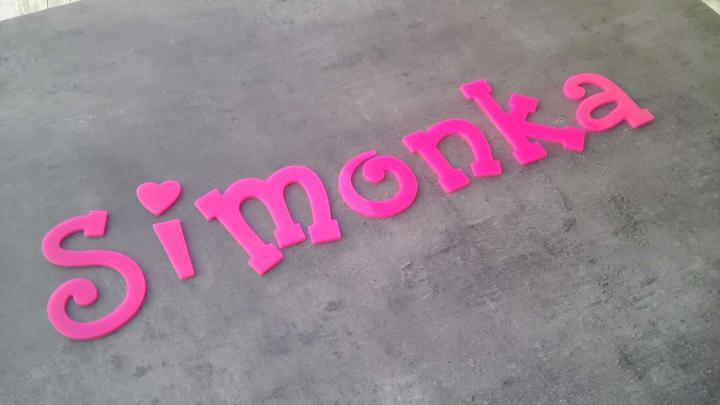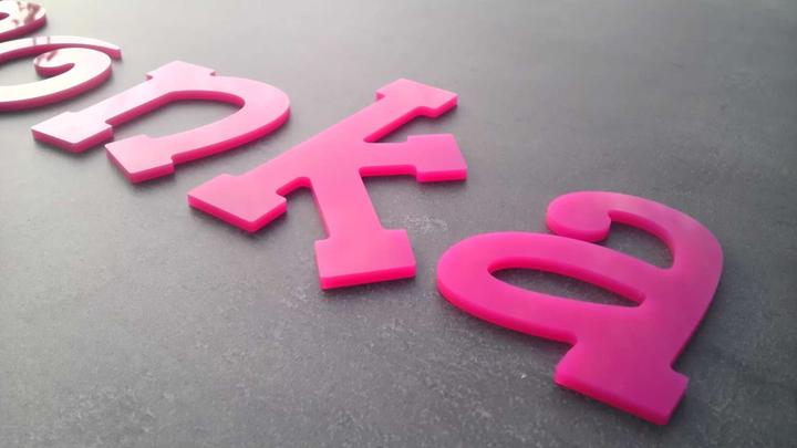 Ružové písmenká z plexiskla