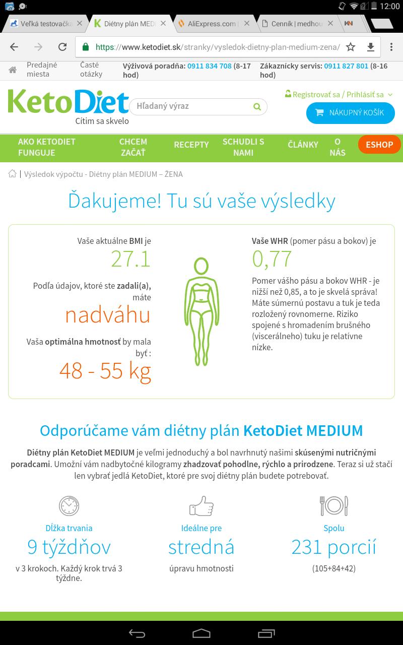 KetoDiet SK Výsledok výpočtu - Diétny plán INTENSE s upozornením - Žena