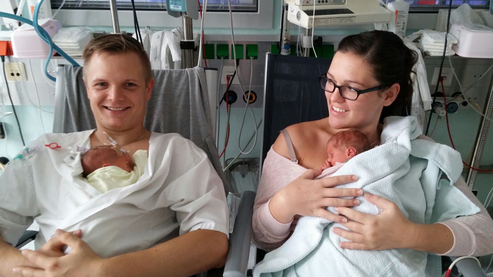 Toll seht ihr 4 aus 😍 ihr schafft die Zeit und sie wird wie im Fluge vergehen und ihr könnt eure Mäuse mit nach Hause nehmen ... Sie sind beide ganz starke Kämpfer ... Genießt die Zeit auch wenn ihr die Mäuse nicht den ganzen Tag bei euch habt ...