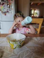 Fľašku sme testovali so skoro 2-ročnou a 4-ročnou dcérkou, dobre sa z nej pilo aj mladšej. Fľaška s nami bola aj na výlete, je skladná, na objem vody či čajíka akurát. Šikovná spona na uchytenie pomáha ak napr. ideme bicyklíkom na preliezky, staršia si ju tak uchytila na košík.