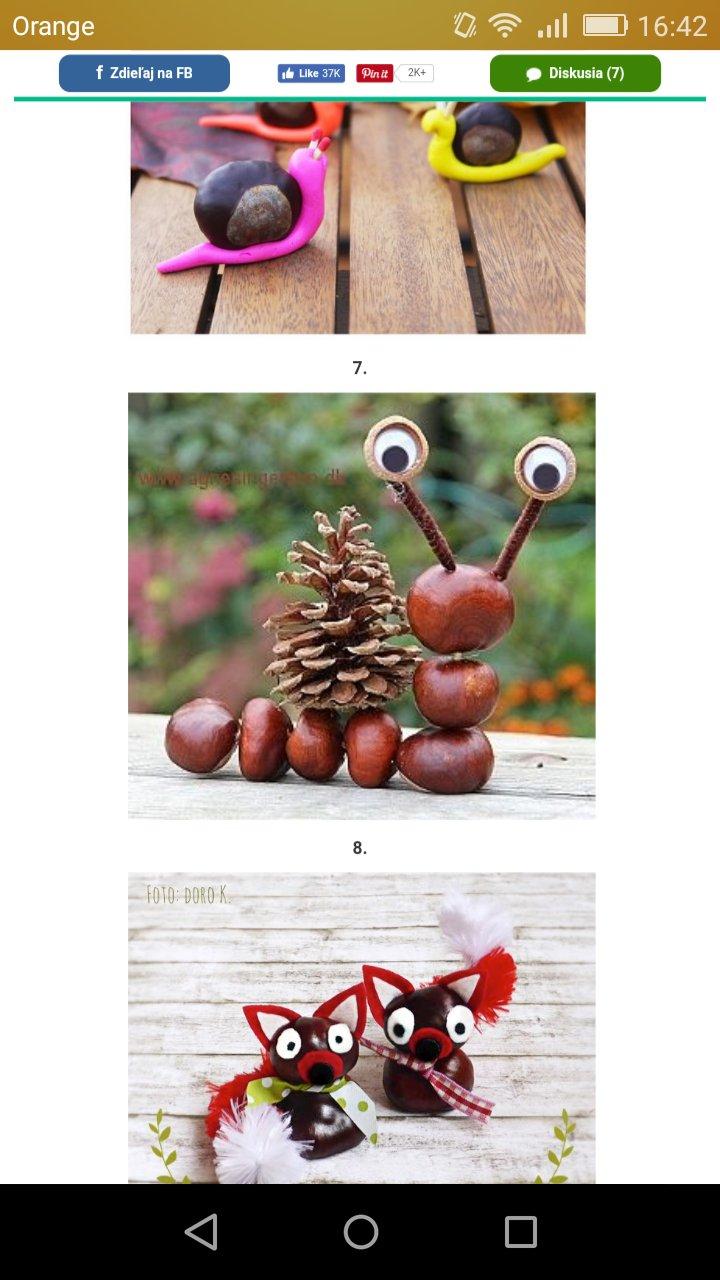 Zienky, dajte nejake inspiracie...syn chcel do skoly urobit jezka zo sisiek, zaludov, sipiek, listia..len uz su dvaja uplne rovnaky ako chcel..tak chce nieco ine vyrobit, len mna nenapada co..su tam rozne postavicky, zvieratka..tak poradte alebo co ste vyrabali vy..potesi aj fotka ako inspiracia..dakujem krasne☺🍁🍂🌰