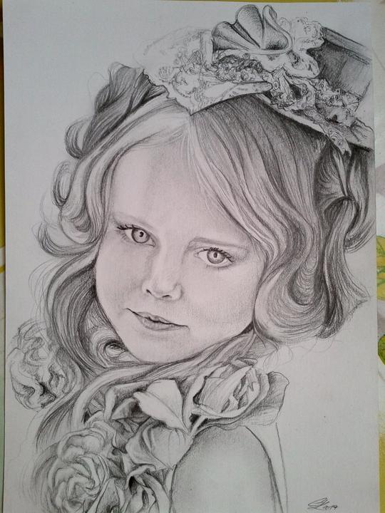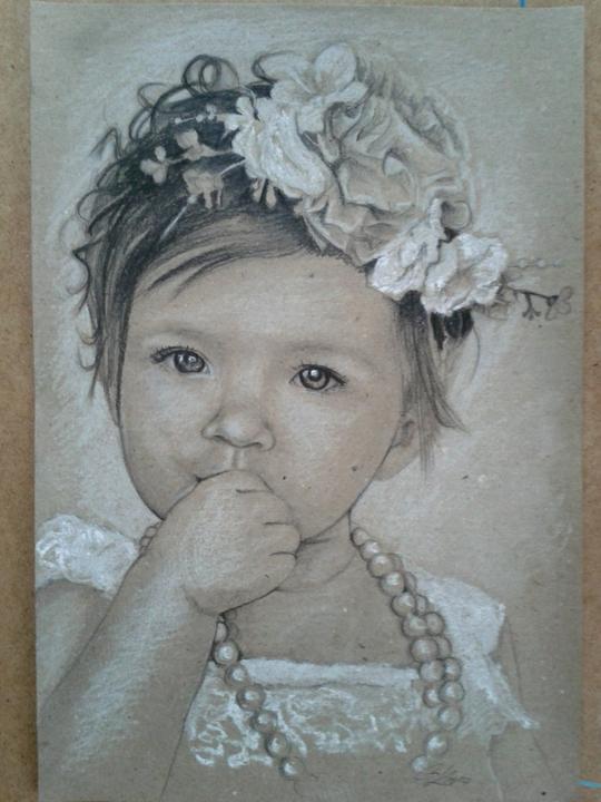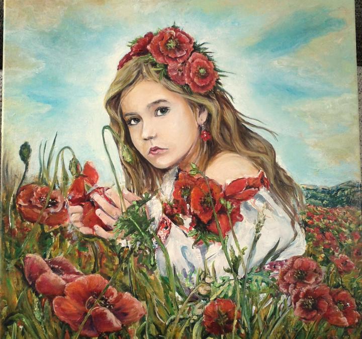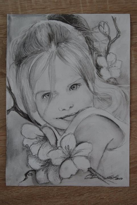 Jarné krásky 3 - olej na plátne 50 x 40 cm. Portrét fixkou dofarbený suchým pastelom.