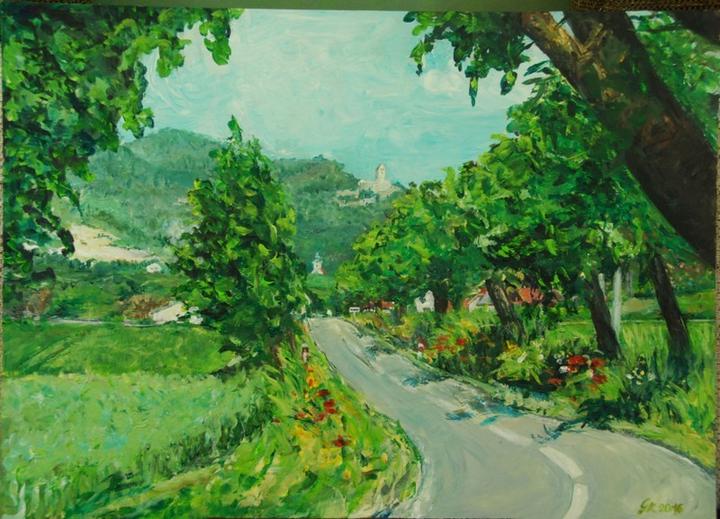 Viacdielny obraz tulipánov. Rozmer celej zostavy je 97 cm, maľovaný na plátnach aj po bokoch, nerámuje sa. Biele tulipány - na želanie premaľované podľa chátrajúcej predlohy a na zmenený formát