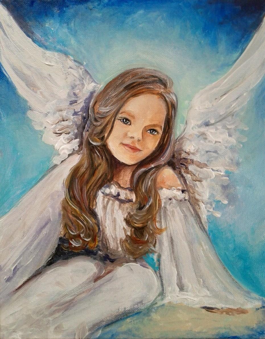 Jednej noci prebudím sa a zistím že nie som sama. Vedľa mňa usmieva sa táto malá dáma.... . Akryl na plátne na tvrdenom kartóne - 24 x 30 cm.