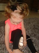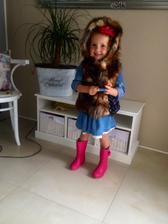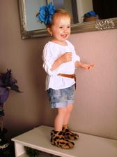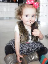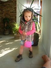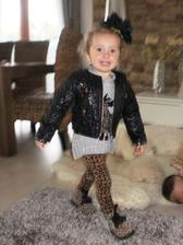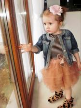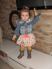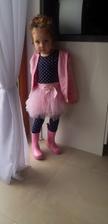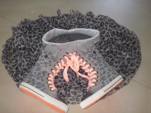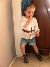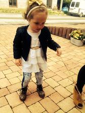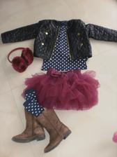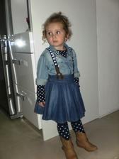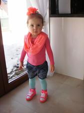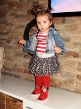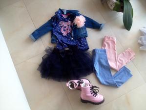Pekne vecicky. Ale neprehanate to. Je este malicka, potrebuje pohodlne oblecenie na hranie. Topanocky pekne,ale nie vhodne pre detsku nozku. Su bez vestelky, nie su kozenne a odvetranie slabe. Inak keby ich nosila skolacka,tak je pysna.