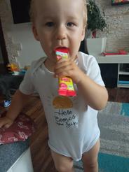 Tyčinka malému veľmi chutila. Je trošku problém s hryzením, nakoľko sa trošku lepí na zúbky ale pochutil si.