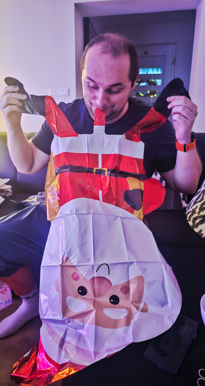 Maly ma zajtra narodky, tak chystáme výzdobu nech to ráno mame hotové. Nafukovací Santa nesmel chýbať. Dosť sme sa zabavili pri jeho fúkani 😀😀😀.