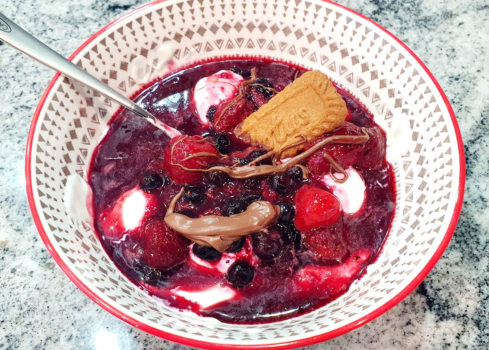 Nevyzerá to lákavo, ale je to poprdeli dobre 😀. Nemám veľmi rada tvaroh, proste mi ta chuť vadí. Ale chcem ho jest. Tak som kupila taky ten hladký bez hrudiek, dala som do neho zopár piškót, zohriate mrazené ovocie s trosku cukru a na vrch ako ceresnicku trosicku nutely. Jasne, zdravé to nie je, ale ta chuť je úžasná a drahý sa ma pýtal, či som si istá, že je v tom tvaroh, lebo ho vôbec necítil 🙂.