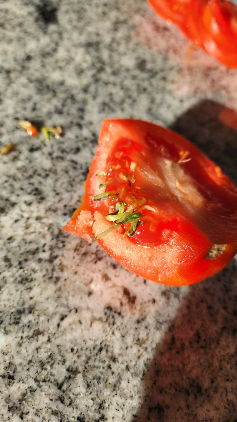 autor@mary86 toto boli z tesca a boli také bledé. Hovorím si dám to na okno nech to aspoň farbu chytí. Dnes ku raňajkam krájam a toto som našla. Ale mňa to potešilo, uz su zasadené 😀.