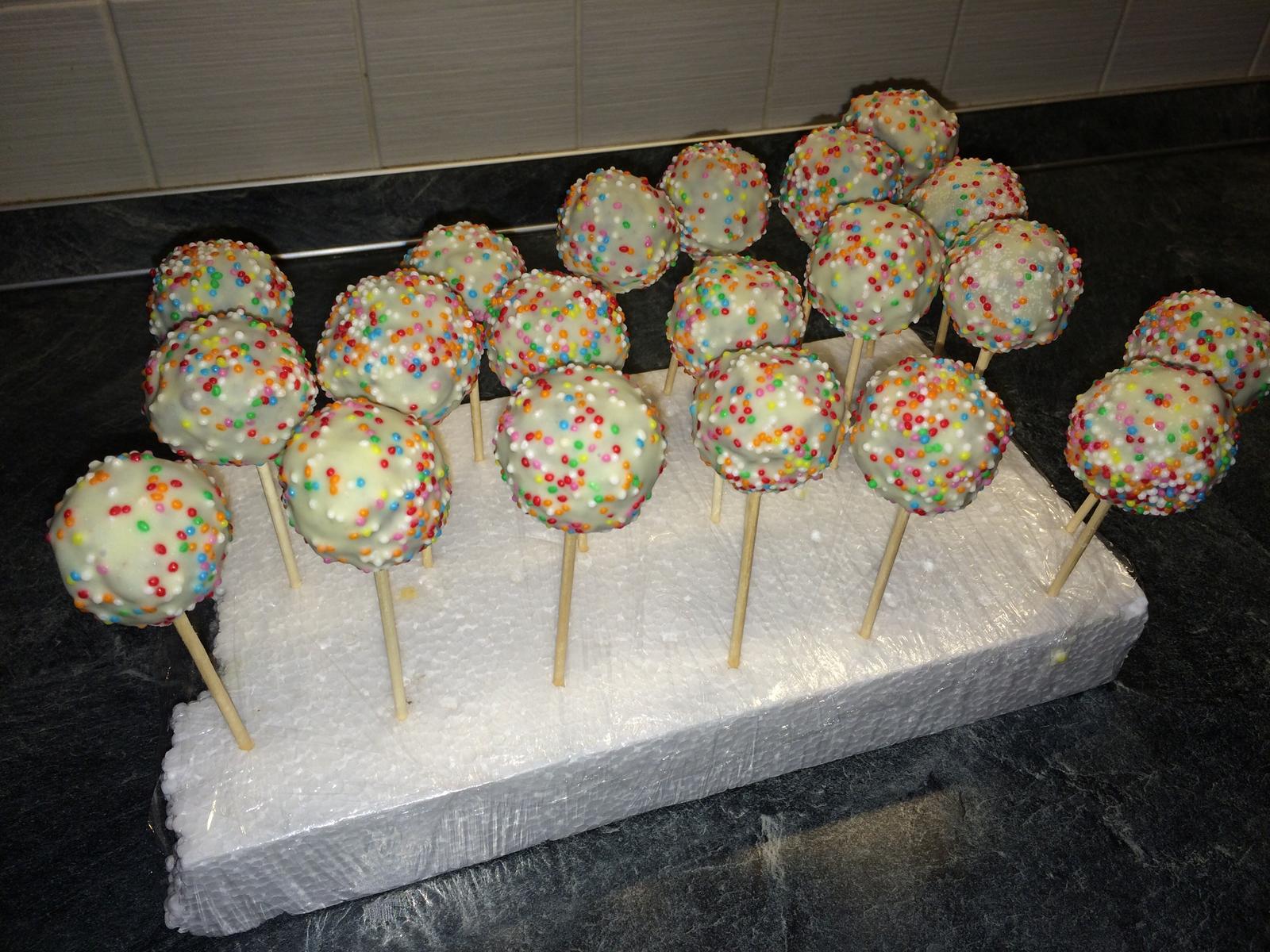 @mimijato Ahoj, ja pouzivam obycajny recept na piskotove cesto, z ktorého robim korpusy na torty. Nemam formu na pecenie cake pops, gulky tvarujem rukami. Po upeceni cesto rozmrvim, pridam trosku dzemu a masla a tvarujem gulky. Tieto dam zachladit do chladnicky. Roztopim si cokoladu a do nej namocim spicku palicky, ktoru zapichnem opatrne do gulky. Zasa treba dat stuhnut do chladnicky a potom namacam cele gulky do roztopenej cokolady a zdobim. Dufam, ze som pomohla 🙂